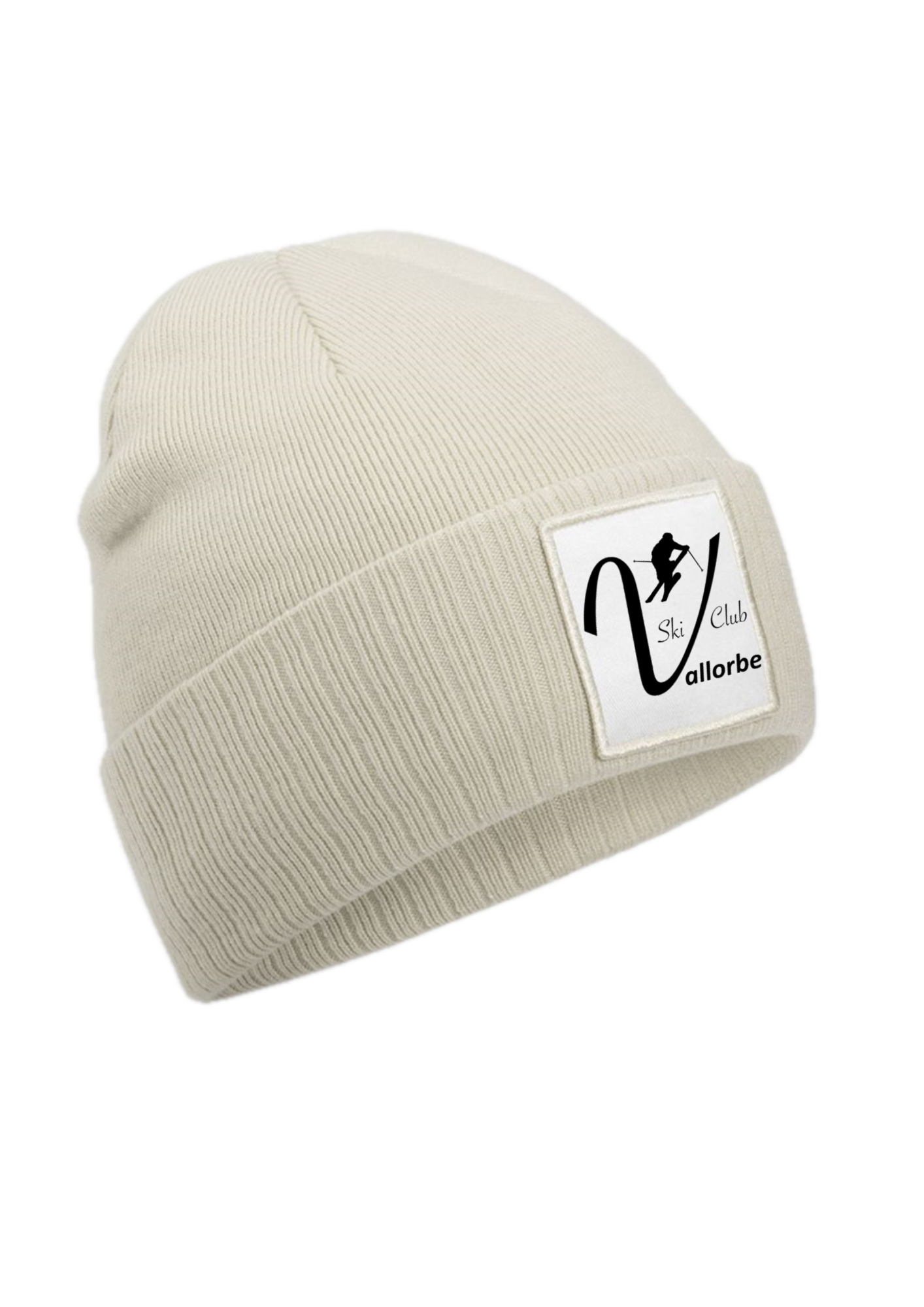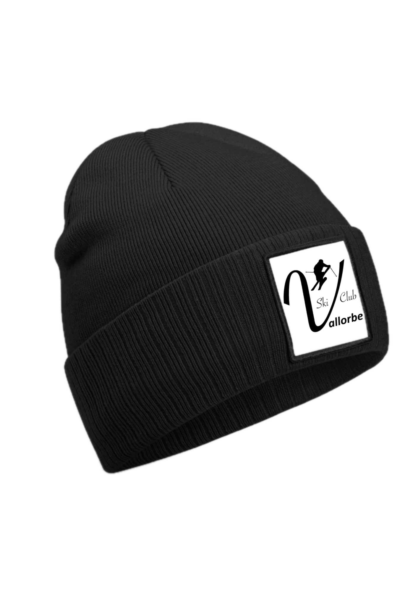 Bonnet tricoté avec empiècement Maille tricotée double épaisseur. Doublure micropolaire. Empiècement en coton sergé (5x5cm)